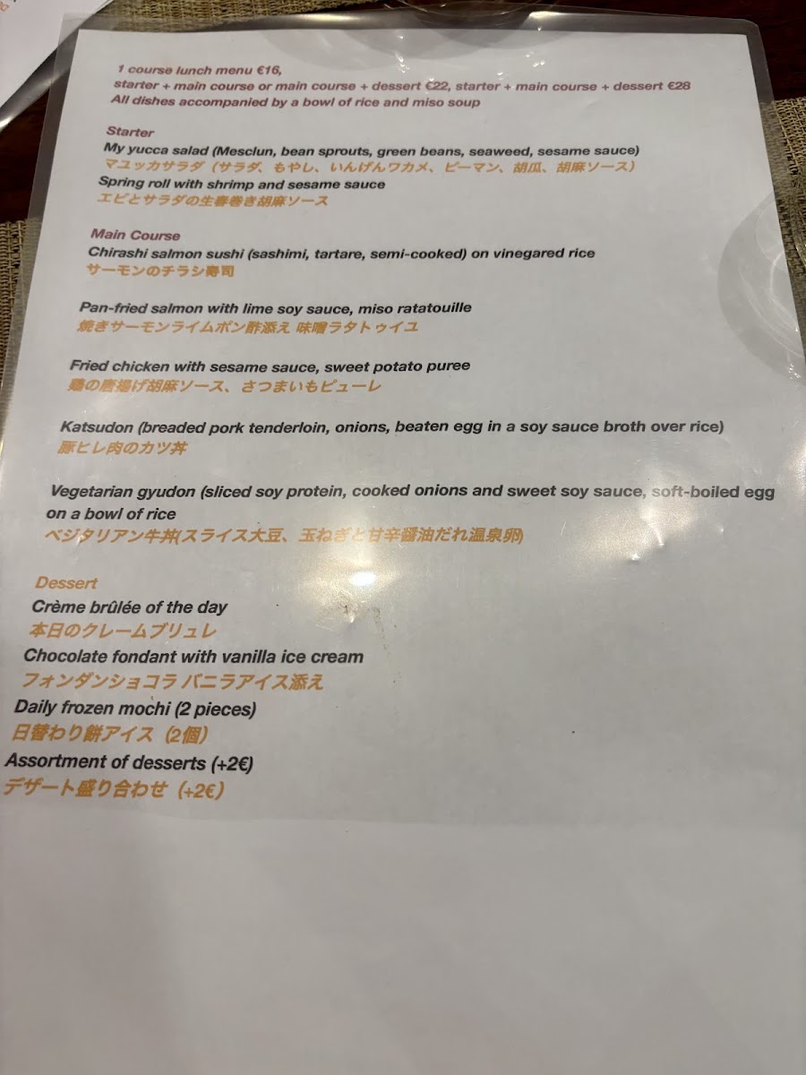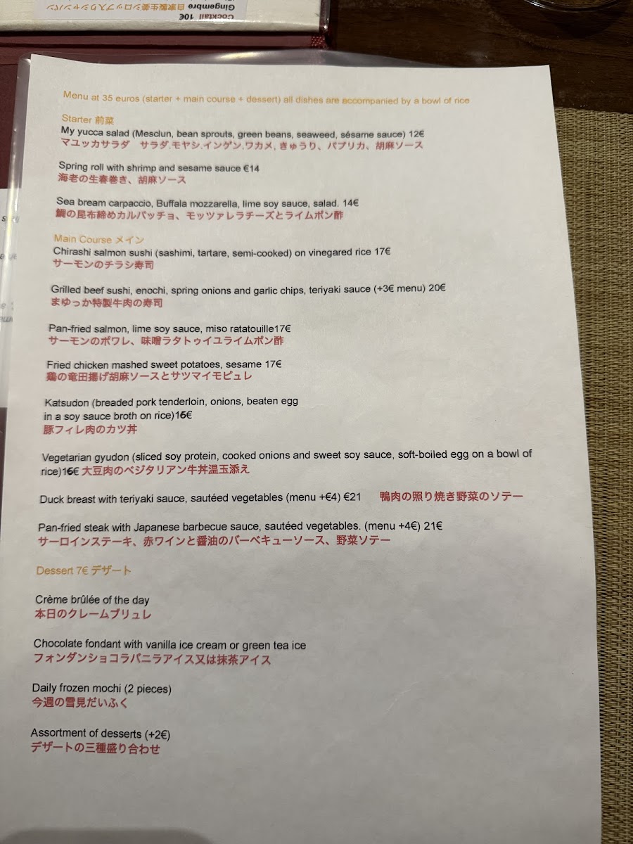 Ma Yucca offers a captivating fusion of Japanese, Asian, and French cuisines right in the heart of Nice. Its menu highlights fresh, authentic flavors with a refined touch, perfectly blending cultures. Start with the Salade Ma Yucca, a vibrant medley of mesclun, seaweed, green beans, and sesame sauce that awakens the palate. The spring rolls with shrimp and sesame sauce showcase delicate layers of texture and taste, while inviting warm dishes like salmon chirashi balance tradition with a local flair. Desserts, such as the exquisitely rich Fondant au Chocolat and the creamy Crème Brûlée du Jour, provide an indulgent finale. Ma Yucca's atmosphere complements its menu, enhanced by thoughtful service and a curated beverage selection including Kirin and Asahi beers. This restaurant not only honors Japanese culinary roots but also elevates them with seasonal, fresh ingredients and elegant presentation, making every meal memorable and deeply satisfying.